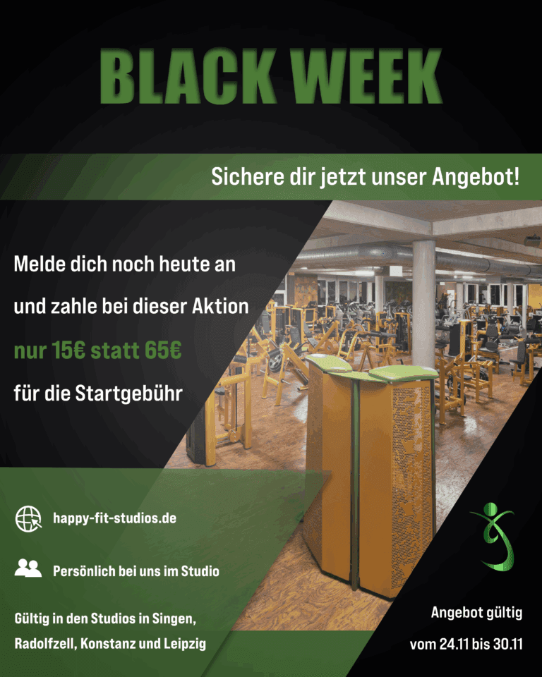 Zwischen dem 08.03.2025 und dem 23.03.2025 finden bei uns im Happy Fit Premium die Aktionstage statt. Spare hierbei bei jedem monatlichen Tarif 10€ pro Monat – zusätzlich schenken wir dir die Startergebühr! Spare bis zu EUR 369.-€!